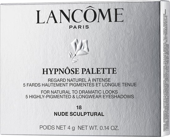 Oog make-up voor alledaagse tot elegante, dramatische looks Lancôme introduceert het Hypnôse Oogschaduwpalet: 5 flatterende tinten om gemakkelijk natuurlijke tot dramatische oogmake-up looks te creëren. Een verzameling van 14 verschillende aangepaste harmonieën van oogschaduwpaletten om een ​​oneindige keuze aan effecten te bieden. Oogschaduwformule met hoog pigmentgehalte zorgt voor uitbetaling in één veegbeweging en opbouwbare intensiteit Gladde en zachte textuur Compact formaat en spiegel voor onderweg Hoog pigmentgehalte Intens gepigmenteerde oogschaduw Lancôme’s Hypnose 5-kleuren oogschaduwpaletten zijn vakkundig samengesteld om make-upliefhebbers een complete dag-tot- nachtkleurgarderobe, met elk palet met 5 tinten die variëren van mat tot metallic – allemaal intens gepigmenteerd en langhoudend om zowel klassieke als speelse oogschaduwlooks te creëren die gemakkelijk onderweg kunnen worden aangebracht. Zorgvuldig samengestelde kleuren, stapsgewijze instructies met twee schuimapplicators.