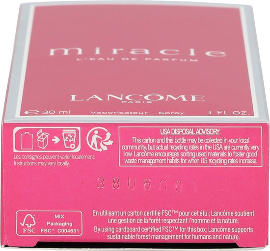 Lancome Parfum Miracle L Eau de Parfum Dit bloemige parfum is ontwikkeld voor dames en werd in 2000 gecreeerd door Harry Fremont en Alberto Morillas De topnoten van dit parfum zijn Lychees en fresia De hartnoten zijn magnolia gember mandarijn peper en jasmijn En de basisnoten zijn amber muskus en jasmijn
