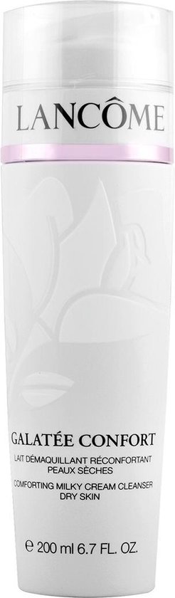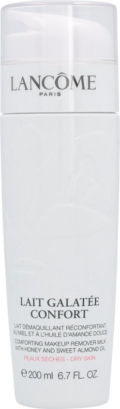 LancAme Cleansers Lait GalatA c e Confort Comforting Makeup Remover Milk Deze zachte melk is speciaal ontwikkeld voor de droge huid en is verrijkt met honing amandelextract en melkeiwitten De melk laat de huid gehydrateerd en zijdezacht achter de rijke romige melk zorgt voor een soepel glad aanvoelende huid zonder residu achter te laten Zeer geschikt voor de droge en doffe huid Gebruik Breng de make up remover met lichte bewegingen aan op het gezicht en verwijder eventuele productrestanten met een tissue of spoel het gezicht af