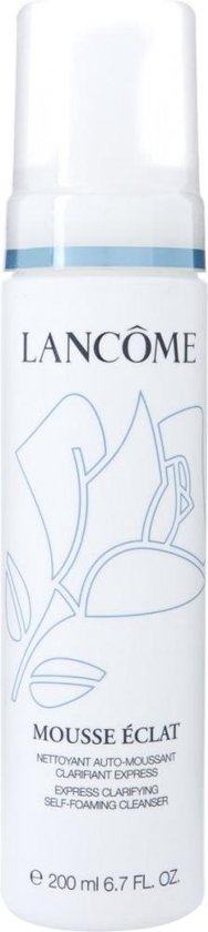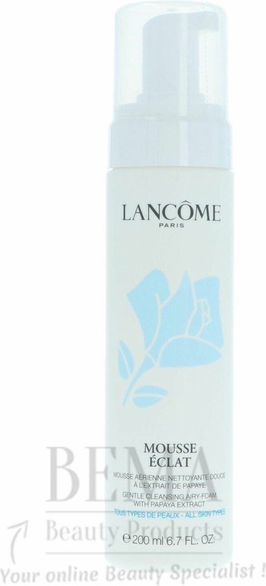 Lancome Cleansers Mousse Eclat Gentle Cleansing Airy Foam Deze mousse reinigt het gezicht zacht en verwijdert alle make up en oneffenheden om zo het gezicht te verhelderen Er komt een zachte stralende en gezonde huid tevoorschijn De mousse bevat natuurlijke ingredienten als papaja en ananas De mousse hydrateert en verzacht met als resultaat een mooie rustige en gladde huid Geschikt voor de normale tot gemengde huid Gebruik Maak het gezicht vochtig breng de mousse aan op het gezicht vermijd de oogcontouren Maak kleine circulerende bewegingen om het gezicht te reinigen besteed extra aandacht aan de T zone
