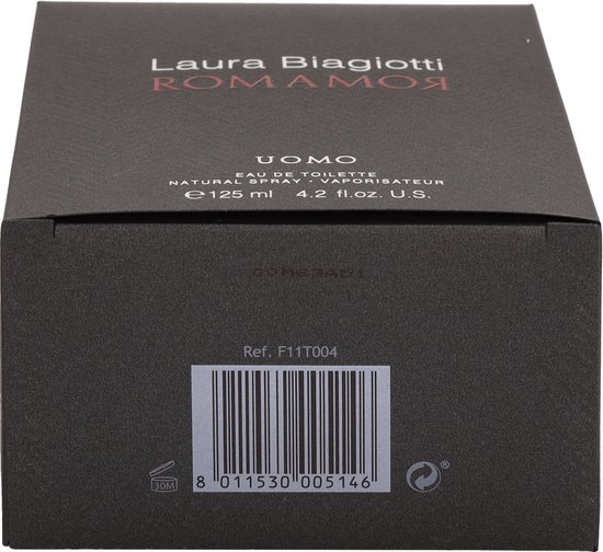 De Laura Biagiotti Romamor Uomo Eau de Toilette Spray is een heldere boog naar de stad Rome. Na het sensationele succes van Roma brengt het huis van Laura Biagiotti opnieuw een eerbetoon aan de Italiaanse hoofdstad. De geur is oosters-aromatisch en heeft zeer mannelijke eigenschappen. Het verspreidt een zeer aantrekkelijke, gepassioneerde mannelijkheid, die echter nooit ostentatief lijkt. Het lijkt erop dat het niet zozeer de stad zelf op het spel staat, maar eerder een zeer specifieke levenshouding die daar heerst. Liefde, passie, temperament, romantiek en een zekere lichtheid kunnen daarom ook aan deze geur worden toegeschreven.