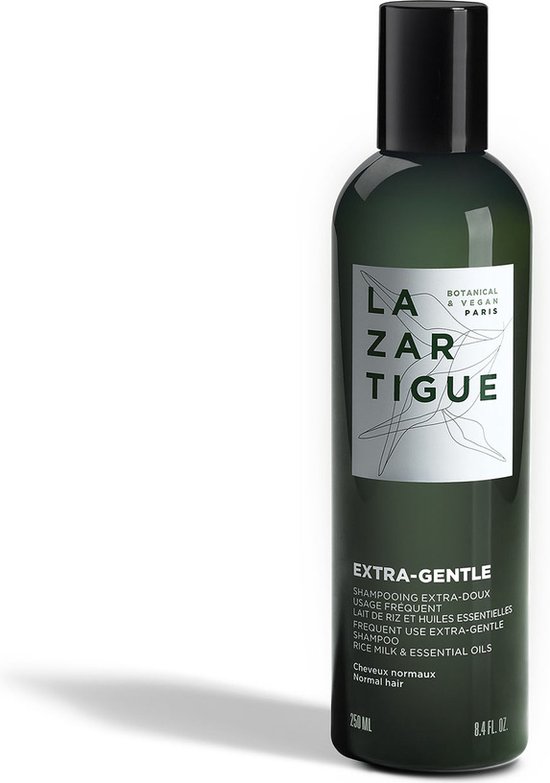 Lazartigue Extra Milde Shampoo 250 ml is een verzorging met rijstmelk en essentiële oliën voor normaal haar. De shampoo reinigt het haar op milde wijze en respecteert daarbij de hoofdhuid. Het haar wordt zacht, soepel en glanzend. Geschikt voor frequent gebruik. 87% van de ingrediënten is van natuurlijke oorsprong. Sulfaatvrij voor zacht wassen. Siliconenvrij voor een natuurlijk gevoel. Veganistisch. Gemaakt in Frankrijk.