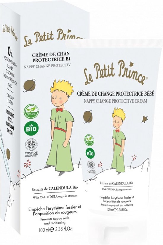 Beschermende, verzachtende, natuurlijke creme voor de luierstreek, voorkomt niet alleen, maar helpt ook schuren en symptomen van luieruitslag bij kleine kinderen te verzachten. Elke moeder van een peuter weet wat een uitdaging het is voor de gevoelige huid van de babybilletjes de altijd aanwezige nattigheid onder de luier, en daarom is het zo belangrijk om een goede en effectieve, maar zeer zachte creme te hebben om te helpen bij de dagelijkse verzorging. Beschermt effectief tegen irritatie De verzachtende creme uit de Little Prince-reeks is speciaal samengesteld om roodheid, irritatie en zelfs barsten van de gevoelige huid onder de luier te voorkomen. De aanwezigheid van titaniumdioxide garandeert een langdurige bescherming, creeert een natuurlijke barriere om roodheid te verminderen en beschermt tegen de effecten van luiernatheid op de gevoelige huid van uw kleintje. Biologische extracten van calendula, havermout en kamille verzachten en hydrateren de huid verder, wat in combinatie met organische sheaboter en aloe vera extract de babyhuid een heerlijke zachtheid geeft. Actieve ingredienten De gezonde huid van uw baby wordt verzorgd met actieve, heilzame, verzorgende en natuurlijk afgeleide ingredienten: biologisch calendula-extract, biologische aloe vera-gel, biologische Kariteboter, biologische zoete amandelolie en glycerine. Klinisch getest Geen kunstmatige kleurstoffen of parabenen Bevat 30% BIO-ingredienten 99,365% natuurlijke ingredienten Geur 100% natuurlijk Hoe te gebruiken? Masseer een kleine hoeveelheid creme in de luierstreek van de baby, op een schone huid en tussen de plooien om irritatie te voorkomen of te verlichten.