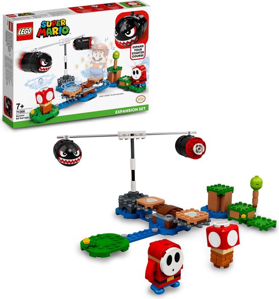Voeg deze uitbreidingsset toe aan jouw LEGO® Super Mario™ startset en bereid je voor op het spervuur van Boomer Bill! Versla de Shy Guy en spring daarna op het ronddraaiende platform. Kies voor het uiteinde met noppen of riskeer het gladde uiteinde. Hoe sneller je ronddraait zonder dat je eraf valt of er door de Boomer Bills af wordt geduwd, hoe meer munten je wint. Verzamel de superpaddenstoel om te voorkomen dat LEGO® Mario™ duizelig wordt of gewond raakt door het vuur!