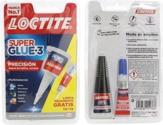 Deze lijmset bestaat uit een tube Loctite Superglue-3 Precision lijm en een tube lijmverwijderaar. Je lijmt onder andere hout, staal en kunststof aan elkaar en door de lange hals van de tube kun je dit zeer precies doen. Restjes lijm verwijder je daarna eenvoudig met de lijmverwijderaar.