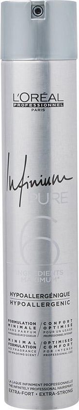 Jazeker dat is die! De Loréal Infinium Pure 6 Extra Strong Haarlak is er in 2 formaten: 300 en 500 ml.