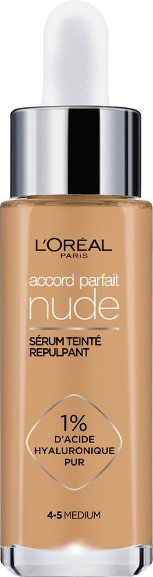 L’Oréal Paris Accord Parfait Nude Volumegevend Getint Serum Foundation met hyaluronzuur – 4-5 Medium – 30ml – Vegan