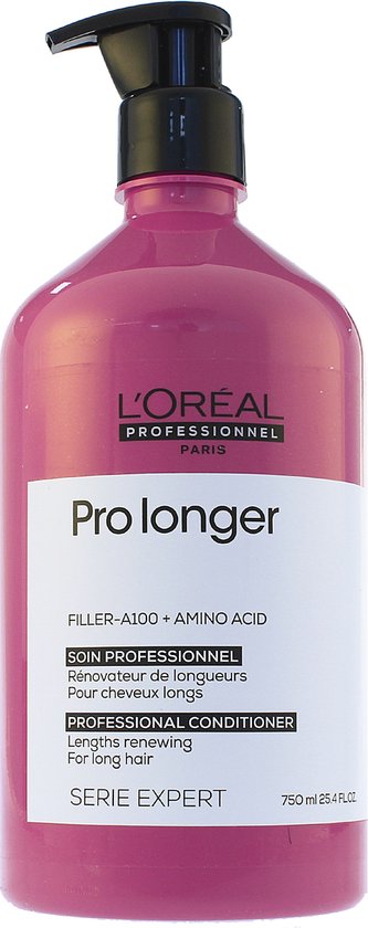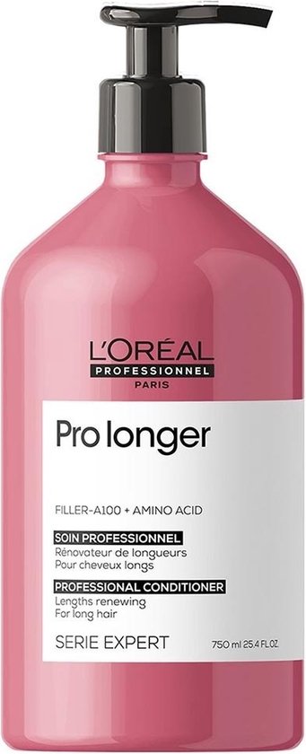 De L’Oréal Professionnel – Pro Longer – Serie Expert – Conditioner 750 ML is een professionele conditioner die speciaal is ontwikkeld om lang haar te verzorgen en te versterken. Deze conditioner is verrijkt met de unieke Filler-A100-technologie, die de lengtes van het haar opvult en versterkt, waardoor het haar er voller en gezonder uitziet. Daarnaast bevat de conditioner aminozuren, die het haar voeden en hydrateren, waardoor het zacht en glanzend wordt. De formule is lichtgewicht en niet-vettig, waardoor het haar niet verzwaard wordt. Na gebruik voelt het haar zijdezacht aan en is het makkelijk doorkambaar.