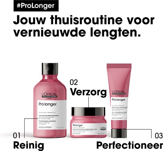 De Pro Longer Shampoo is speciaal ontwikkeld voor lang haar De versterkende en verdikkende shampoo is verrijkt met een innovatief gepatenteerd Aminozuur Filler A 100 Dit Aminozuur zorgt ervoor dat de haarvezel van binnenuit gevuld wordt De shampoo helpt haarbreuk te voorkomen Het haar wordt grondig gereinigd Het haar zal zijdezacht aanvoelen en krijgt een mooie glans Gebruik in combinatie met de andere producten van de Pro Longer lijn voor een optimaal resultaat