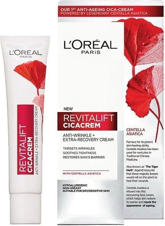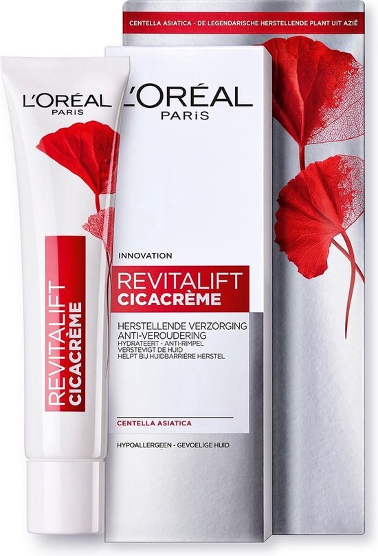 L’Oreal Paris Revitalift Cicacream Anti-Aging Gezicht Moisturizer met Centella Asiatica voor anti-rimpel en herstel van de huidbarrière, Zonder parfum, Zonder parabenen