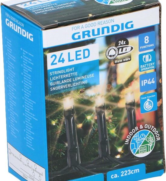 Grundig Kerstverlichting – 24 LED – 8 Standen – met Timer – 223 cm – Warm Wit