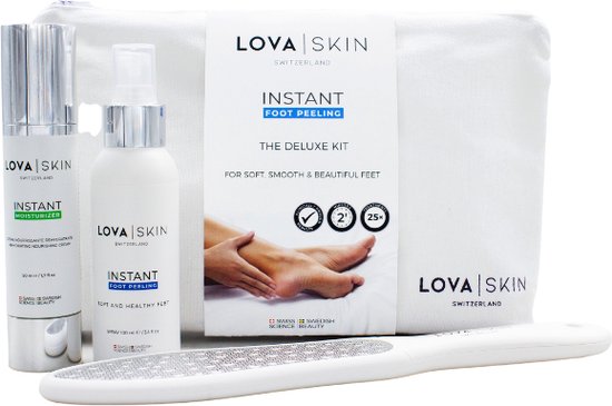 Wil je zijdezachte, eeltvrije voeten zonder de kosten van een pedicure? Dan is de Lovaskin Instant Foot Deluxe Kit perfect voor jou! Deze set, verpakt in een leuke biologisch katoenen etui, bevat de winnaar van de Dutch Beauty Awards 2022: de Lovaskin Instant Foot Peeling Spray.