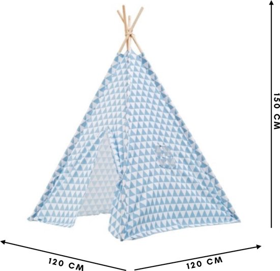 Luxe Tipi Tent TRIANGL blauw – 120 x 120 x 150 cm – wigwam speeltent – tipi tent kinderen – speeltent kinderen – jongens en meisjes – speelgoed