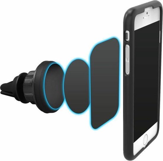 Je plaatst deze Magnetische Telefoonhouder voor in de Auto eenvoudig in het ventilatierooster van je auto. Plaats de meegeleverde metalen plaat op je smartphone of telefoonhoesje zodat je je telefoon op elke positie in de houder zet.