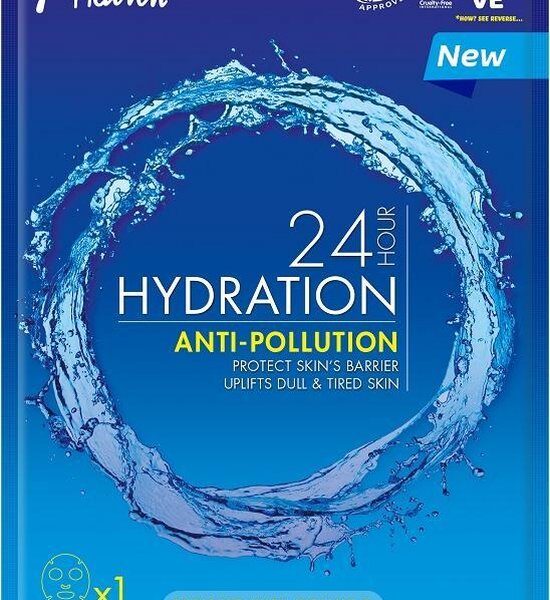 7th Heaven 24 Hour Hydration Biodegradable Bamboo Sheet Mask Enriched with Vitamin E to Protect the Skin’s Barrier and Uplift Dull Tired Skin, Anti-Pollution, 1 Count