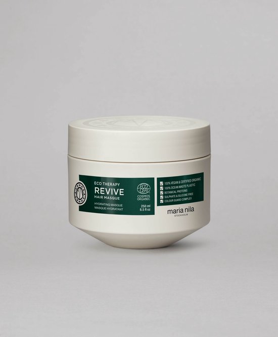 Alle haarmaskers van Maria Nila hebben een pH van 5-5,5, wat het natuurlijke pH-niveau van je huid en haar is. De maskers helpen je haar te verzachten, voeden en hydrateren. Gebruik voor sterk en gezond haar het masker met shampoo en conditioner uit de Eco Therapy-serie. Alle producten zijn dagelijks te gebruiken.