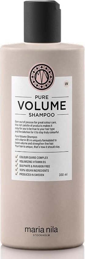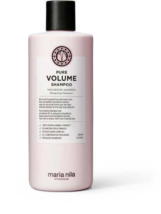 Maria Nila Pure Volume Shampoo is een heerlijke, lichtgewicht shampoo, die Pro-Vitamine B5 bevat en speciaal ontwikkeld is om extra volume en veerkracht aan het haar te geven. Pro-Vitamine B5 maakt het haar dikker, wat het haar een vollere look geeft. Pro-Vitamine B5 voegt extra voeding aan het haar toe, wat het gezonder en glanzender maakt. Maria Nila Palett Pure Volume Shampoo bestaat voor 100% uit plantaardige stoffen en is volledig vrij van parabenen en sulfaten. * Geeft extra volume en veerkracht aan het haar * Creëert volume en geeft het haar een vollere look * Bestaat voor 100% uit plantaardige stoffen * Vrij van parabenen en sulfaten Gebruik: Masseer Maria Nila Palett Pure Volume Shampoo in nat haar, spoel daarna grondig uit. Resultaat: Maria Nila Palett Pure Volume Shampoo zal het haar vederlicht en voller maken. Hierdoor wordt het volumineuzer en krijgt het meer body. Tip: Gebruik voor optimaal resultaat ook de andere producten van Maria Nila Palett Pure Volume.