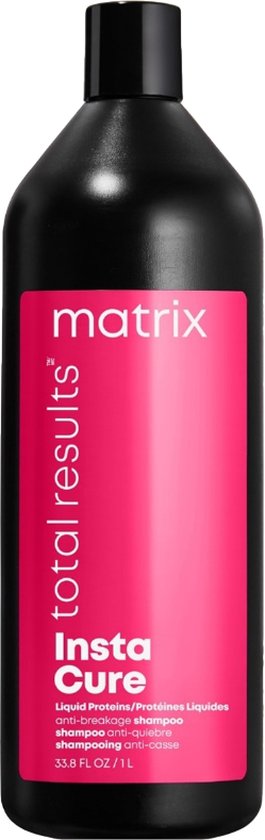 Matrix Total Results Insta Cure Shampoo is een shampoo die beschadigd haar zacht reinigt. De anti-breuk shampoo zorgt er niet alleen voor dat je haar goed wordt gereinigd, maar ook helpt het broos haar te herstellen. Hierdoor wordt het breekbare haar weer sterk en zullen gespleten haarpunten minder worden. De vloeibare proteïnen in de Insta Cure producten helpen bij het herstel van droog en beschadigd haar.