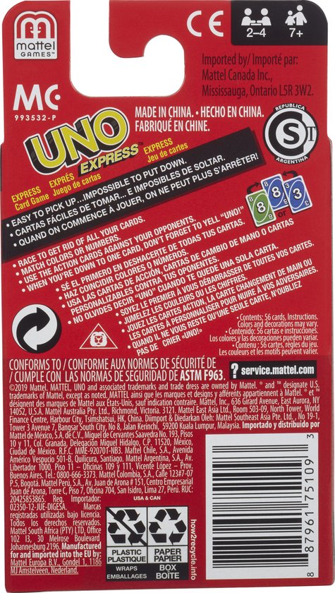 Heb je de laatste kaart in je handen, roep dan: “UNO”. Doe je dit niet bij je laatste kaart? Dan zul je twee kaarten van de stapel moeten pakken. De speler die als eerste al zijn kaarten heeft weggespeeld wint het spannende kaartspel.