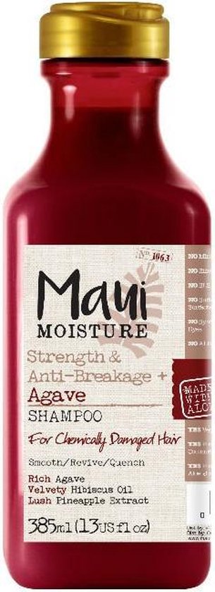 Maui Moisture Strength & Anti-breakage Agave Shampoo is doordrenkt met rijke agave, hibiscus en ananas-extracten speciaal voor chemisch beschadigd haar. De shampoo vergroot de elasticiteit van het haar en zorgt voor het herstel van beschadigd haar. De Maui Moisture Strenght & Anti-breakage Agave Shampoo voorziet het haar van een stralende glans en zorgt voor klittenvrij haar. De Maui Moisture Strenght & Anti-breakage Agave Shampoo is vrij van sulfaten.