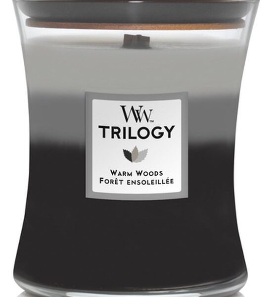 WoodWick Hourglass Medium Trilogy Geurkaars – Warm Woods