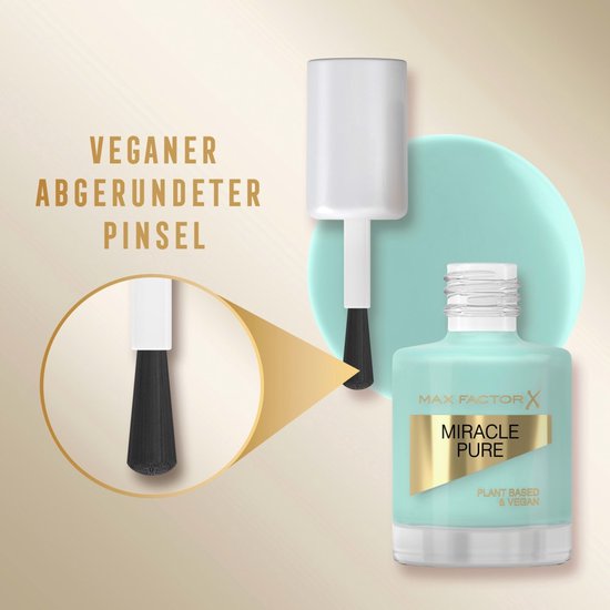 Verzorgend tijdens het dragen…Max Factor introduceert Miracle Pure Nagellak – onze eerste 100% vegan nagellak mede mogelijk gemaakt door plantaardige ingrediënten; Met rijke kleuren en een hoge glans die lang aanhoudt.