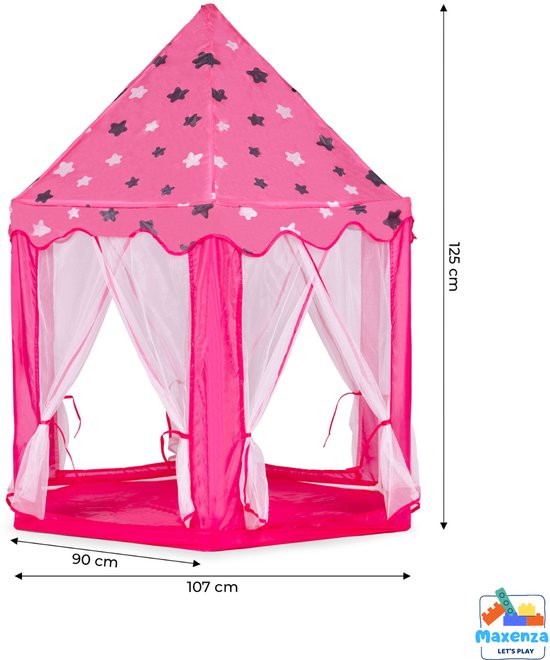 Maak kennis met de Maxenza 8236 Let’s Play Plug & Play Prinses Kasteel XXL Speeltent – 105 x 90 x 120 cm – Voor Meisjes vanaf 3 jaar! Deze tent is perfect voor meisjes die van prinsessen en sprookjes houden en biedt urenlang plezier, zowel binnen als buiten.