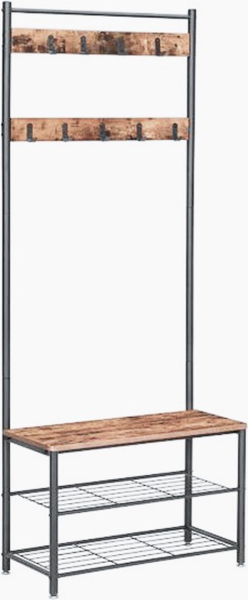 Maxenza Home Kapstok met Schoenenrek en Plank – Staande Garderobe in Industriële Stijl