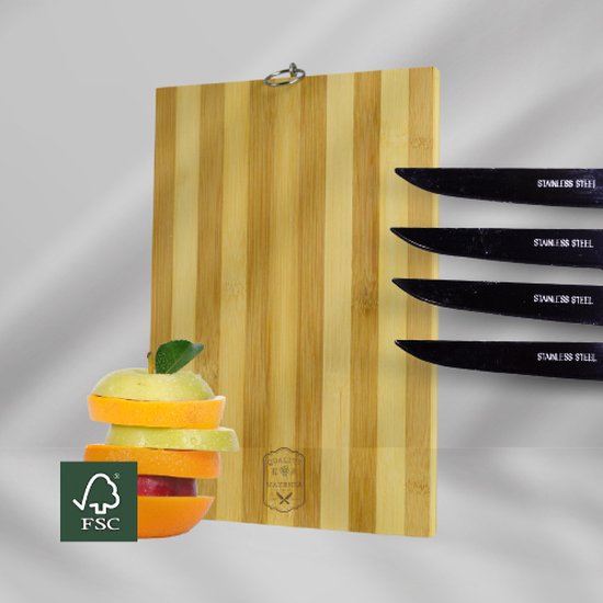 Upgrade uw keukenervaring met de veelzijdige en stijlvolle Maxenza Houten Snijplank en RVS Fruitmessen Set. Bestel nu en verrijk uw maaltijdvoorbereiding met een perfecte mix van functionaliteit en elegantie!