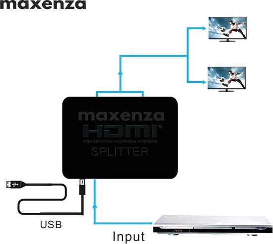 Maxenza Visual ProHD 2-Poorts HDMI Splitter – Volledige HD & 3D, 4K@30Hz, Dolby Audio, Signaal Herhaling, ABS/PVC – Zwart