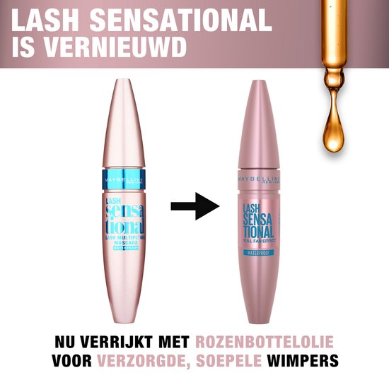 Maybelline Lash Sensational Black Waterproof Colour group Black Mascara effect Curling Definition Lengthening Volumizing Look Defined Package width 22 mm Package depth 22 mm Package height 128 mm