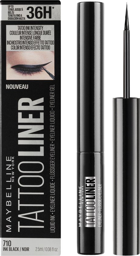 Maybelline New York – Tattoo Liner Liquid Ink – 710 Inked Black – Zwart – Ultra langhoudende zwarte liquid eyeliner – 1,2 ml