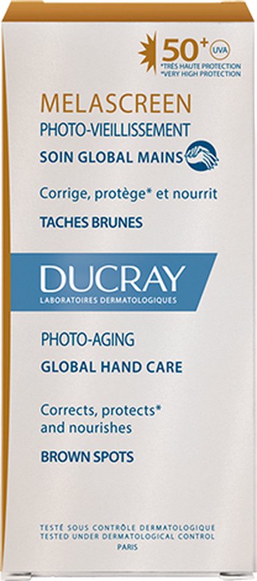Ducray Melascreen Soin Global Mains SPF50 Deze handcrA me is geschikt voor vroegtijdige huidveroudering door de zon en bruine vlekken De veelzijdige verzorging vervaagt bruine vlekken en bevat sterk geconcentreerde corrigerende en beschermende bestanddelen Gebruik Zo vaak als nodig 1 A 2 dosissen op de handen aanbrengen regelmatig opnieuw aanbrengen