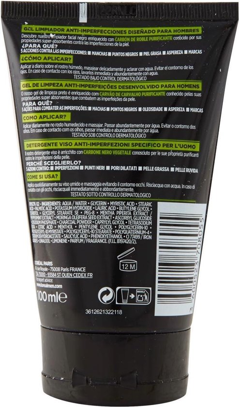 L'oréal Paris Men Expert Pure Charcoal Gel Exfoliante P.negros 100 Ml