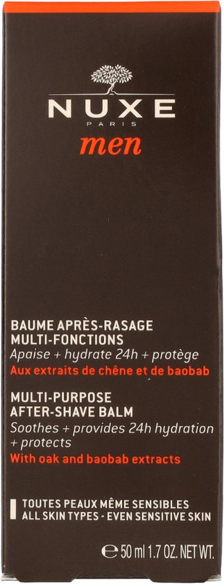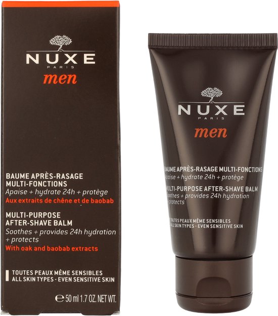 Nuxe Men Baume Apres Rasage Een multifunctionele aftershave balsem met eik en haagbeukextracten De multifunctionele dagelijkse verzorging voor elk huidtype zelfs de gevoelige huid die in een enkele beweging irritaties en het branderige gevoel bij het scheren kalmeert intens hydrateert gedurende 24 uur en tekenen van stress en vermoeidheid vermindert Het trekkerige gevoel en roodheid verdwijnen De huid voelt weer comfortabel en soepel aan is uitgerust en heeft meer weerstand Bevat 79 ingrediA