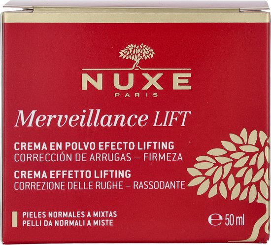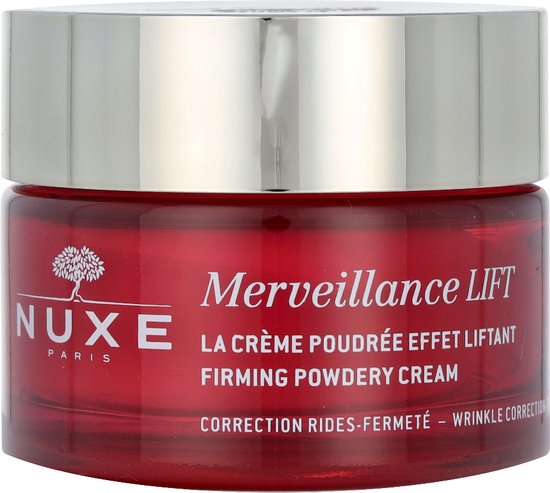 INNOVATIE – POEDERACHTIGE CRÈME MET LIFTEND EFFECT CORRECTIE VAN RIMPELS – STEVIGHEID – NORMALE TOT GEMENGDE HUID. Een textuur met instant opvullend effect en een huid die bij het aanbrengen meteen gelift aanvoelt voor 71% van de vrouwen*. Rimpels worden gladgestreken, de huid is steviger. De huid ziet er steviger en zichtbaar jonger uit. ‘s Ochtends op gelaat, hals en décolleté aanbrengen. 96% ingrediënten van natuurlijke oorsprong. Vegan formule zonder ingrediënten of derivaten van dierlijke oorsprong. NUXE-PATENT (FR).