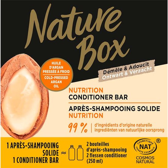 Nature box conditioner bar – Argan nutrition – ontwart en verzacht – cosmos neutraal – biologisch & vegan – eco certified – 80 gram