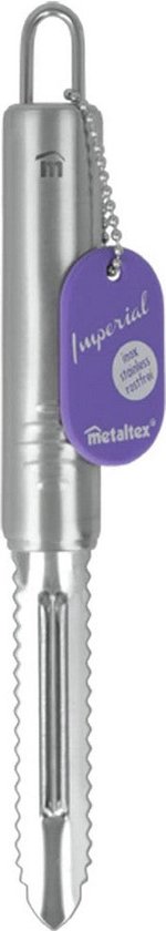 De Imperial-collectie bestaat uit een brede range keukengerei van hoogwaardig RVS, uitgerust met een ophangoog en geschikt voor de vaatwasser. De ovale handvatten met duimgrip bieden een hoog gebruikscomfort. Deze dunschiller is een onmisbaar accessoire voor in de keuken.