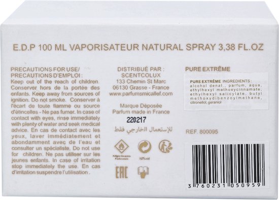 The finest floral scents are used in Micallef Pure Extreme to provide women with a premium perfume to cherish in all of lifes important moments. The elegant opening of rose and gardenia transitions to jasmine to create a luscious bouquet for the senses. White musk, amber and precious woods create the base for the floral tones to dance and play.