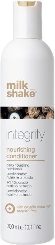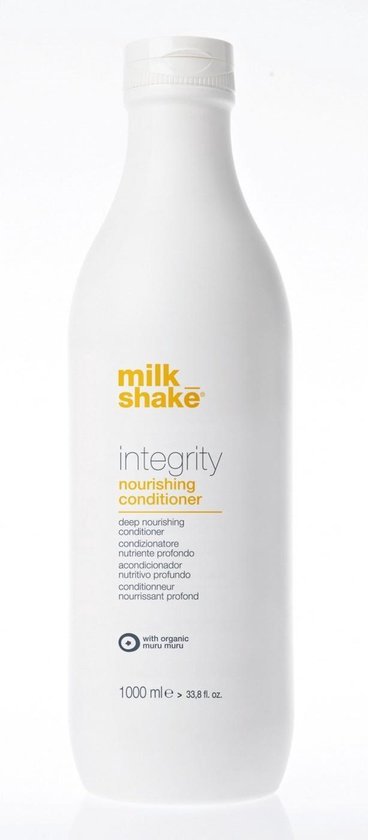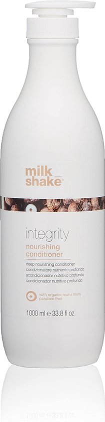 De Milk_shake Integrity Nourishing Condtioner 1000ml is verrijkt met Muru Muru boter en een aminozurencomplex. Dit zorgt ervoor dat beschadigd haar de juiste hoeveelheid herstructureringselementen krijgen. Het beschermt en herstelt de haarstructuur. Ook krijgt het haar een mooie gezonde glans.