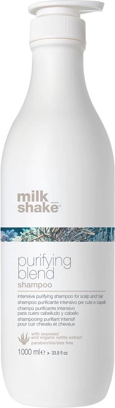 Milk_Shake Scalpcare Purifying Blend Shampoo. Deze diepe, maar mild reinigende shampoo brengt de hoofdhuid weer in balans en geeft een stralend resultaat. De hoofdhuid wordt bevrijdt van onzuiverheden, talg, roos en restanten van stylingproducten. De formule is verrijkt met actieve ingrediënten met buitengewone, reinigende eigenschappen om de hoofdhuid en het haar te beschermen. Gebruik: gelijkmatig verdelen over natte hoofdhuid en haar, inmasseren en grondig uitspoelen.