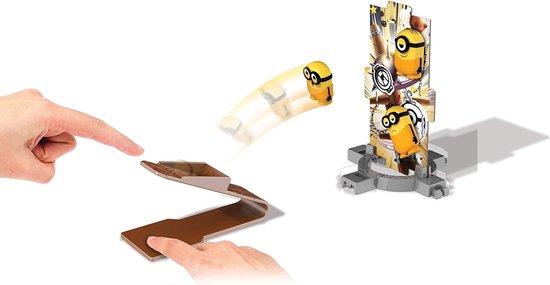 Minions’ Splat ‘Ems minifiguren zijn zacht, plakkerig en helemaal leuk! Kom in actie en lach met deze complete verrassingspakketten met thema’s uit de film Minions: The Rise of Gru. Elk bevat drie minifiguren, een luxe lanceerder, een bouwbare doelkaart, stickers en een kaarthouder. De launcher en de kaart zijn groter dan onze standaard Splat ‘Ems voor grotere, krachtigere schietoefeningen. Laat de 3 kleverige, squishy Minions door de lucht vliegen en mik op een doelkaart. Als je het kaartoppervlak raakt, zullen de minifiguren spatten en op hun plaats blijven. Lanceer ze naar de kaarten en plan een overname! Met meerdere beschikbare pakketten, kun je de kaarten combineren om een groter doelwit van filmlocaties te bouwen. De compacte figuren en speelitems hebben het perfecte formaat voor Minions-plezier thuis en onderweg.