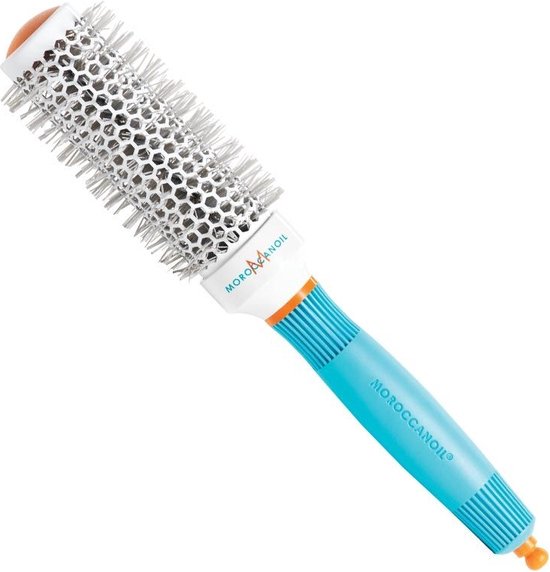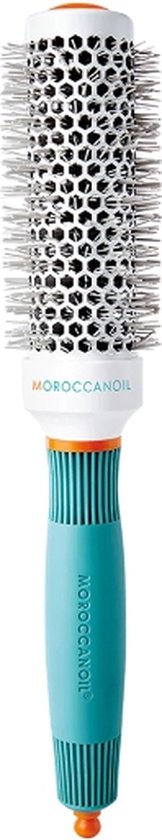 Moroccanoil Ceramic Round Brush D35 is gemaakt van hoogwaardige materialen en bevat keramische en ionische eigenschappen. Hierdoor wordt warmte beter vastgehouden en geleid. Föhnen met deze ronde föhnborstel van Moroccanoil zorgt er voor dat de droogtijd wordt verkort. De negatieve ionen in de borstel zorgen er voor dat de haarschubben tijdens het föhnen gesloten worden, zodat het haar meer glans en body krijgt. De Moroccanoil Ceramic Round Brush 35 mm heeft een diameter van 35 mm en is daardoor uitermate geschikt voor kortere tot halflange kapsels en het creëren van een slag. In het uiteinde van het handvat zit een handige haarpin verstopt.