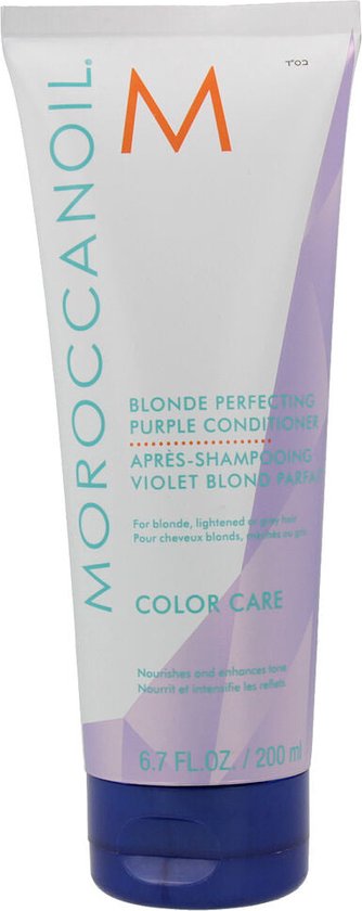 Haal het beste uit je kleur met de Moroccanoil Blonde Perfecting Purple Conditioner. Deze toon-corrigerende conditioner bestrijdt een ongewenste, koperachtige tint en zet violet pigmenten af om gele en oranje tinten tegen te gaan. De sulfaatvrije formule verfrist het haar en houd de kleur intens en reinigt het op milde wijze. De conditioner is vrij van sulfaten en bevat ArganID™ technologie, met positief geladen microdeeltjes arganolie die aangetrokken worden door de negatief geladen haarwortel. Hierdoor kunnen de krachtige antioxidanten en vitamines van arganolie tot diep in de schacht van het haar doordringen, waardoor het haar gezonder zal worden en een prachtige glans krijgt. De verpakking van de Perfecting Purple Conditioner wordt geproduceerd met 50% gerecycled plastic.