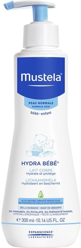 Mustela Bebe Hydra Bebe Corps Lichaamsmelk Specifiek geformuleerd voor de baby s vanaf de geboorte is de Hydra Bebe Lichaamsmelk ontworpen voor de dagelijkse zorg van het lichaam De huid wordt onmiddellijk en duurzaam gehydrateerd dankzij de combinatie van plantaardige olien en van Vitamines E en F Ze is soepel zijdeachtig en van een extreme zachtheid dankzij de Shea Boter Dankzij zijn nieuwe formule verrijkt met Avocado Perseose draagt de Hydra Bebe Lichaamsmelk ertoe bij om de huidbarriere van uw baby te versterken en om de natuurlijke cellulaire rijkdom van zijn huid te behouden Gebruik Breng het s morgens en s avonds aan op een schoon lichaam na de toiletverzorging