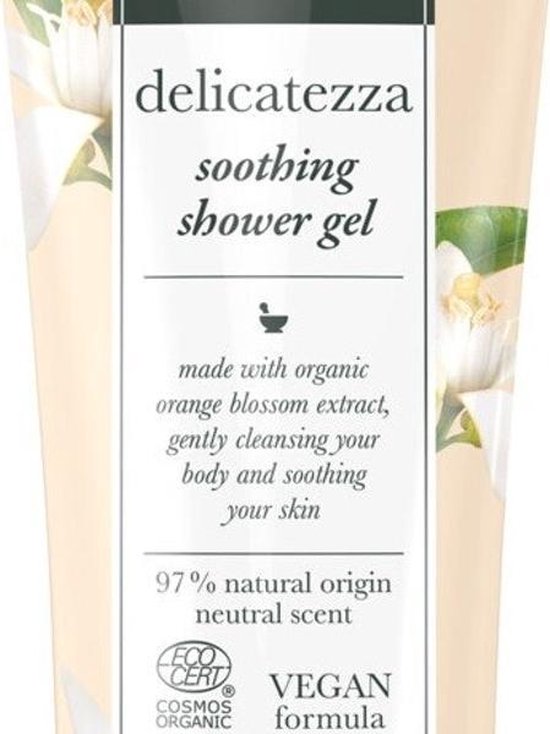 Ontdek la bella vita met de biologisch gecertificeerde douchegel van N.A.E.. Delicatezza verzachtende douchegel is gemaakt met biologische sinaasappelbloesem, heeft een neutrale geur en zorgt voor een milde reiniging van de huid.