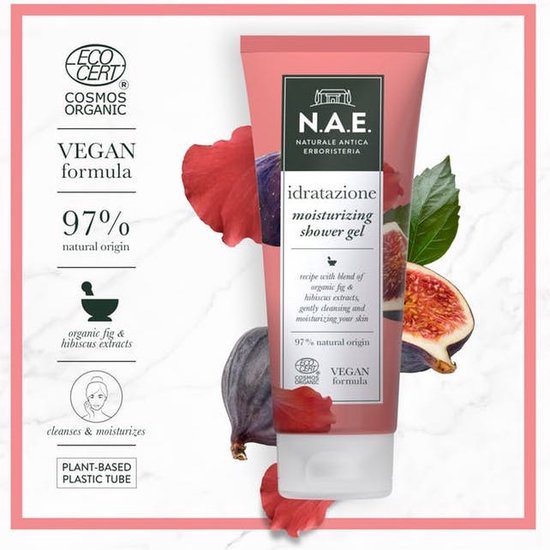 Ontdek la bella vita met de biologisch gecertificeerde douchegel van N.A.E.. Idratazione hydraterende douchegel is gemaakt met biologisch vijgen en hibiscus extract en zorgt voor een milde reiniging van de huid.