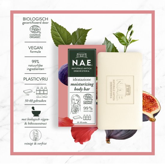 Ontdek la bella vita met de biologisch gecertificeerde body bar van N.A.E. Idratazione hydraterende body bar is plastic-vrij en gemaakt met biologisch vijgen en hibiscus extract.