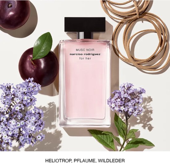 Narciso Rodriguez Musc Noir is a musky powdery fragrance for women Nose Sonia Constant brought together the following four notes to create a perfume that exudes intrigue and mystery plum heliotrope musk and suede The fruity floral musky and leathery accords conspire to produce a layered luxurious fragrance