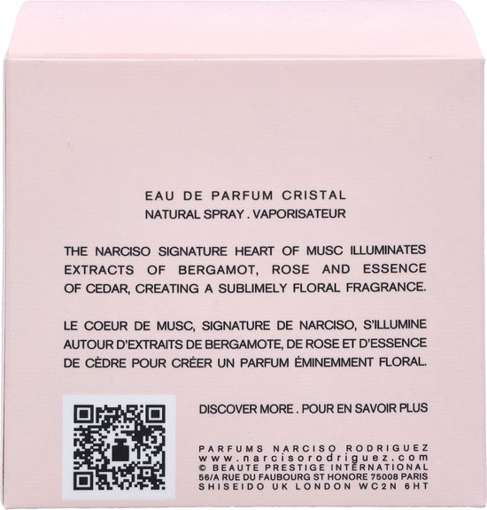 - Tijdloze Elegantie: Narciso Cristal belichaamt de tijdloze elegantie waar Narciso Rodriguez bekend om staat, waardoor het een perfecte keuze is voor vrouwen die een subtiele allure waarderen.